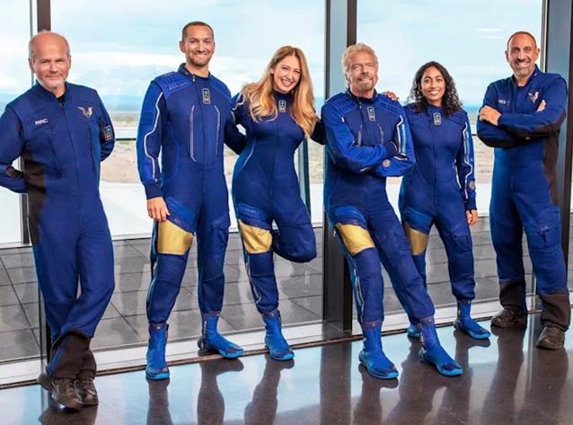据报道,周日的飞行将搭载6人,是第一次满员升空飞行。其中两名为飞行员Dave Mackay 和 Mike Masucci,余下4名乘客分别是布兰林、维珍银河的首席宇航员教练Beth Moses、公司首席运营工程师Colin Bennett以及政府事务和研究部副总裁 Sirisha Bandla。他们的参与都旨在评估乘客体验,因为维珍银河希望明年开始在地球上空进行商业载客飞行。