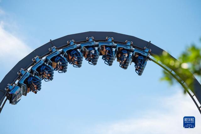 8月26日,游客在体验北京环球影城主题公园里的霸天虎过山车。 新华社记者 陈钟昊 摄