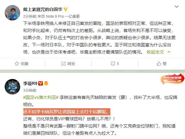 白国华认为没上洛国富和阿兰应该是出自总体考虑,只有李铁才最清楚球队的情况。而李璇则直言看不懂李铁的排兵布阵,还不如像卡纳瓦罗那样让洛国富上去踢后腰。