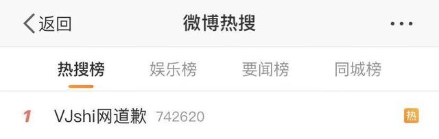 当晚,话题#VJshi网道歉#冲上热搜第一。