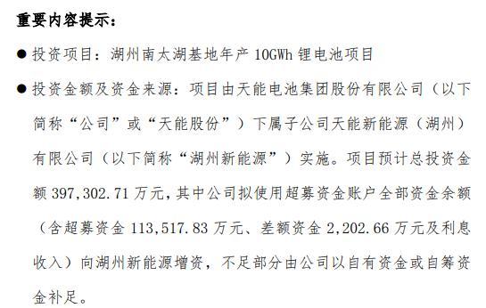1.《天能股份使用超募资金投资建设湖州南太湖基地年产10GWh锂电池项目》援引自互联网,旨在传递更多网络信息知识,仅代表作者本人观点,与本网站无关,侵删请联系页脚下方联系方式。