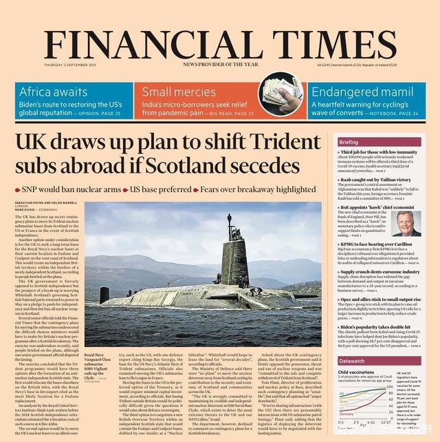 据英国媒体《泰晤士报》与《金融时报》等一系列的权威媒体报道,若是未来苏格兰成功独立,英国将转移战略核潜艇的基地,将其转移到美国或者法国。为此,英国国防部正在制定一项秘密紧急应对计划,一旦苏格兰独立,皇家海军就会在第一时间将战略核潜艇,攻击核潜艇驶出基地,阻止苏格兰政府控制。