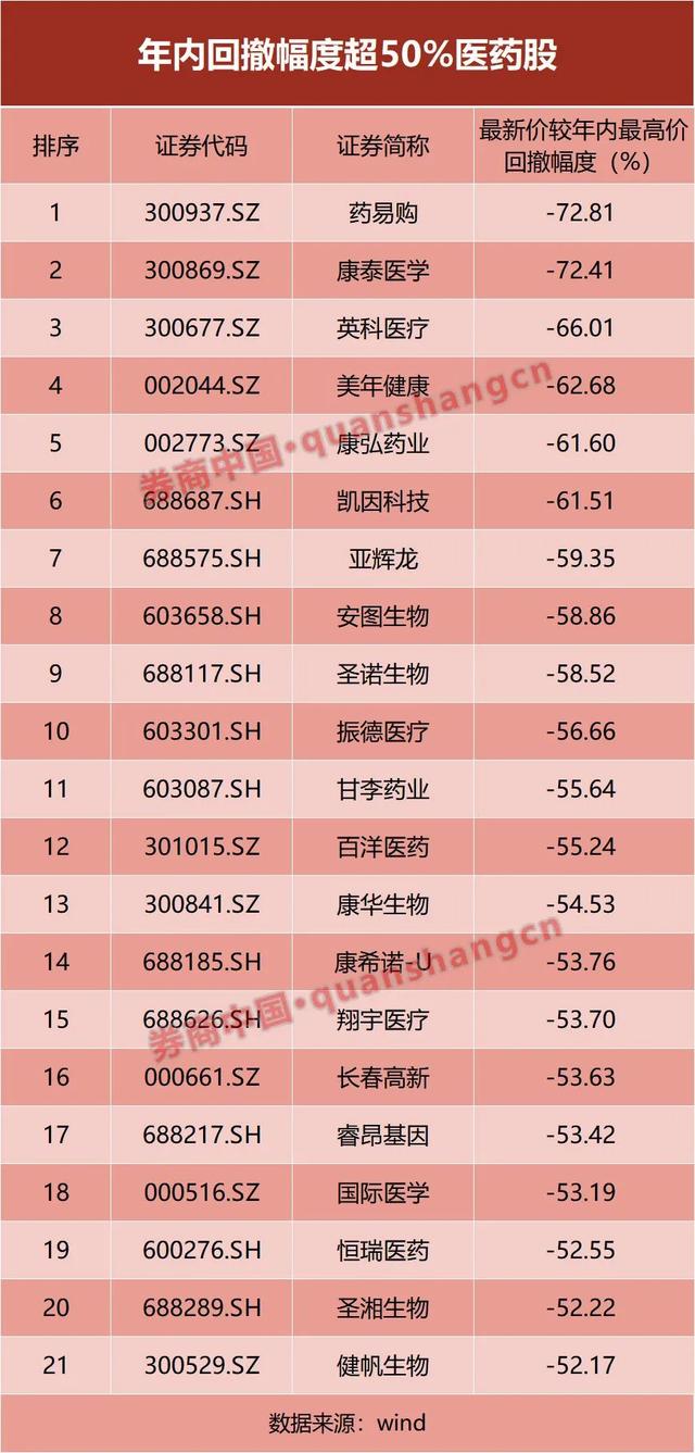 今年的市场呈现极度分化,虽然指数变化不大,但不少个股却经历了巨幅回撤,医药股成为重灾区之一。