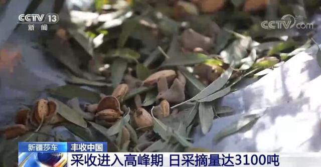 这几天已经进入巴旦木的采摘高峰期,莎车县每天的采摘量在3100吨左右。巴旦木树比较高,很多果实挂在树顶上,人们就用一根木杆拍打树枝,成熟的巴旦木会很快脱落下来,下面用塑料袋接着,看着采摘方式还挺传统的,也是因为当地种植面积大但人均面积比较少,不适合机械化整体采摘。现在当地正在建设巴旦木产业园,逐步完善了从收购、晾晒、加工、销售等一体化模式。