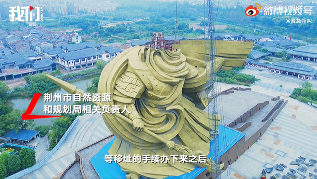 近日,据报道,荆州巨型关公雕像已启动拆卸转移工作,目前关公雕像的头部已被卸下。据了解,关公像拆迁项目中,拆后异地组装总投资4000万元,项目名称为“像体铜片拆解及异地组装”,搬移工程总投资为1.55亿。据了解,该项目投入1.7亿余元。2020年10月8日,荆州巨型关公雕像被住建部通报,责令整改。