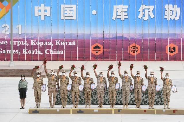 14天的赛程,来自四大洲、七个国家的182名参赛队员进行了激烈角逐,共产生8个单项第一名,3个团体第一名,打破5项赛事纪录。其中,中国参赛队包揽3个项目的团体第一名,包揽库尔勒赛区所有金牌。在响彻全场的掌声中,赛事组委会宣布并颁发了“国际军事比赛-2021”“苏沃洛夫突击”“晴空”和“安全环境”3项比赛的团体奖。