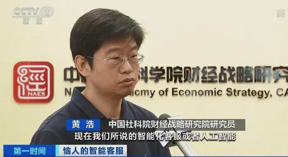 中国社科院财经战略研究院研究员 黄浩:我们必须要正确认识智能化客服或者人工智能,它不是完完全全的智能化,只是辅助我们工作。所以在任何情况下,我觉得人工客服是不能缺少的。