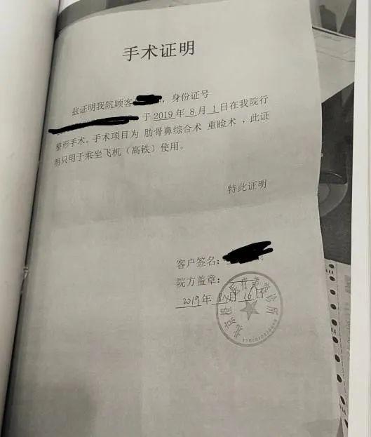 △ 应聘者按约定贷款并做美容手术后,医美机构开的证明