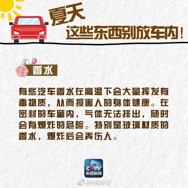 3、注意危险物品(尤其是夏季):打火机、空气清新剂、真空铝罐包装的化妆品、香水、摩丝等受热容易膨胀爆炸,最好不要放在车内。