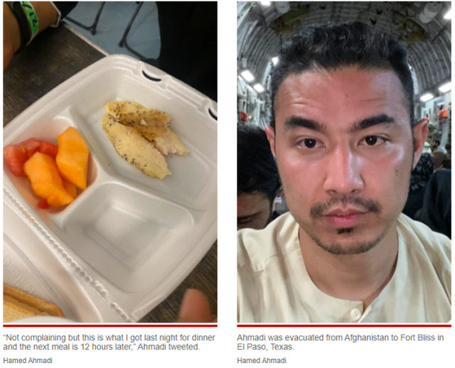 据《纽约邮报》4日报道,一名阿富汗难民在推特上发帖,还附带着一张照片,显示美军布利斯堡基地的食物配给不足,但随后他却在网上遭到美国网友的骚扰。