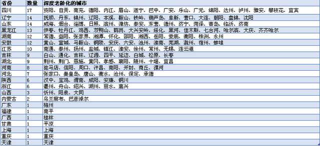 相比之下,东北的老龄化程度要更深一些,数据显示,东北三省共36市,已经全部进入到深度老龄化阶段。