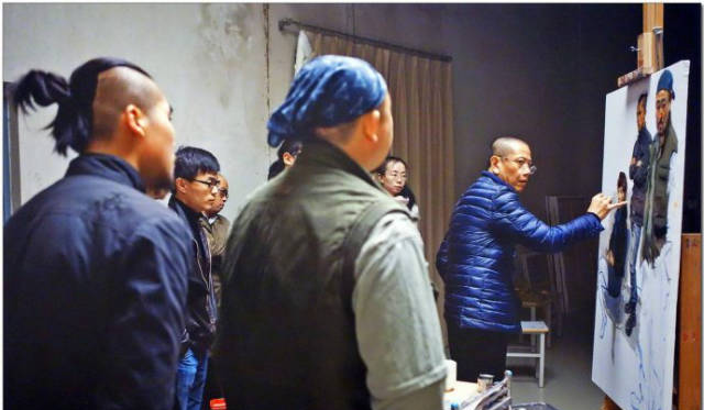 2013年,北京,艺术家陈丹青在工作室进行创作。