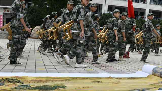 参加军训的高一学生从旁边走过,一个个发出惊叹的声音。一名男生说:“太了不起来,很震撼,没想到在外边打着工,还能制作这么美的艺术品,太励志了!”