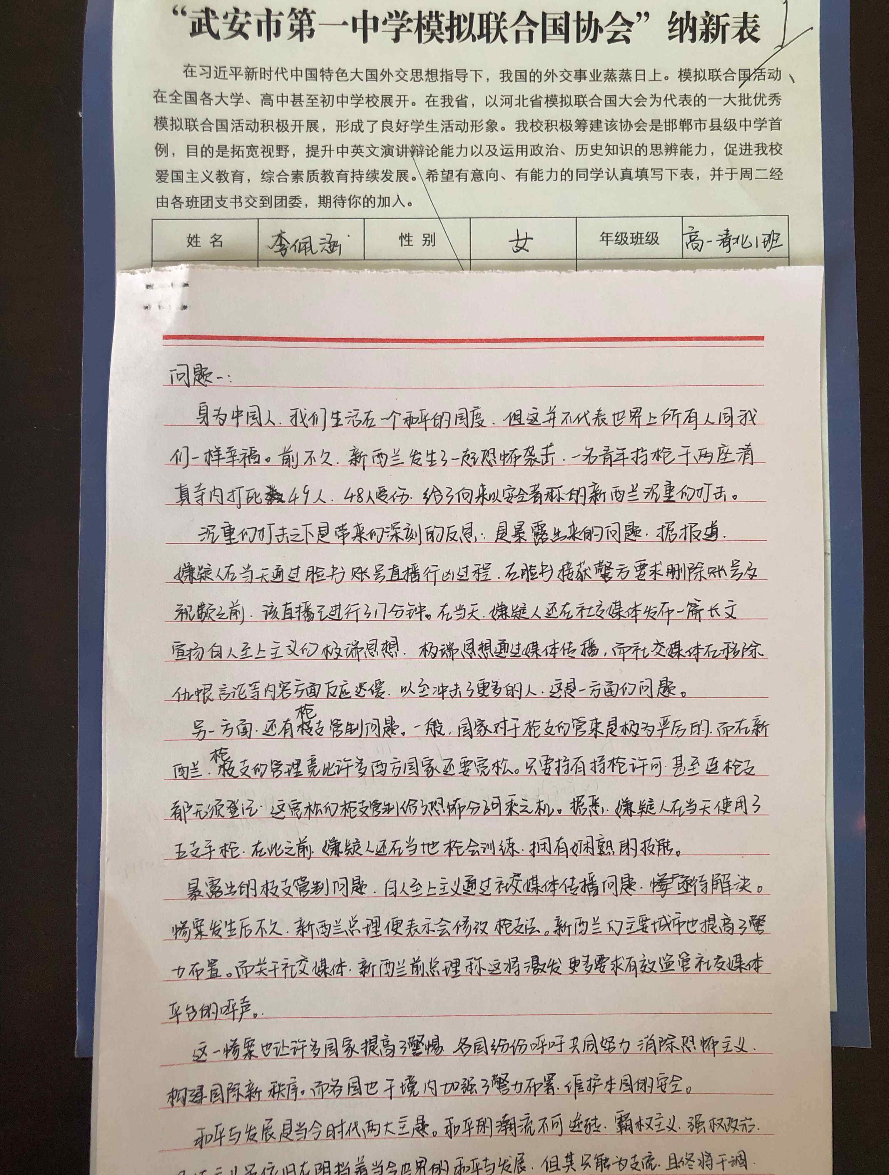 武安一中首届模联协会纳新动员——We公益组织成员郭瑾作动员