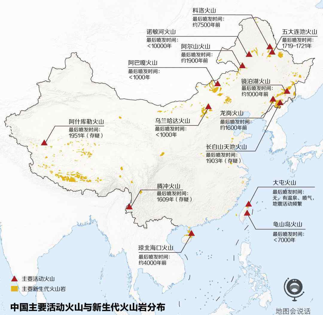 ▲ 现在,地球上有500多座活火山。国内已探明的活火山至少14座,其中长白山天池是最大、最有喷发可能的火山