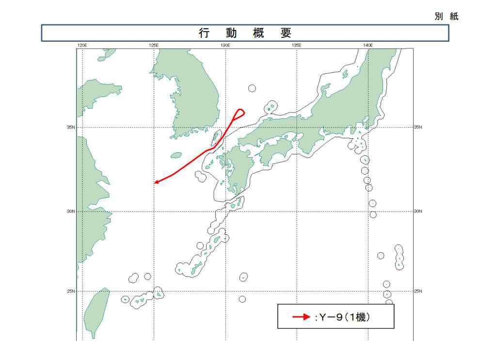据联参透露,当天上午10时6分许,一架疑似Y-9侦察机的中国军机从离於岛(中国称苏岩礁)附近上空的韩国防识区和中国防识区重叠区域,首次进入位于济州岛东南方向上空的韩国防识区。随后于10时23分许,该机离开韩国防识区飞往日本防识区,上午11时40分又从日本防识区再次进入韩国防识区,并于11时58分经重叠区飞离。