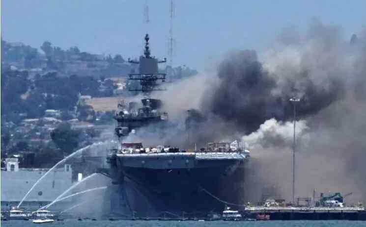 据美国全国广播电台当地时间7月13日报道,停泊在加利福尼亚州圣迭戈海军基地的“好人理查德”号两栖攻击舰持续一天的大火还在燃烧,造成至少59人受伤。