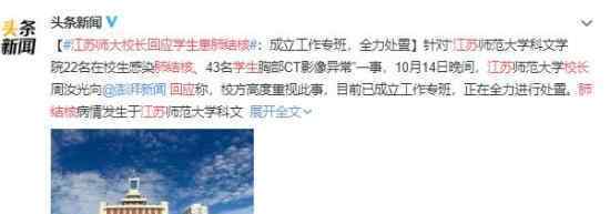 2.《江苏师大校长回应学生患肺结核 什么情况》仅供读者参考,本网站未对该内容进行证实,对其原创性、真实性、完整性、及时性不作任何保证。