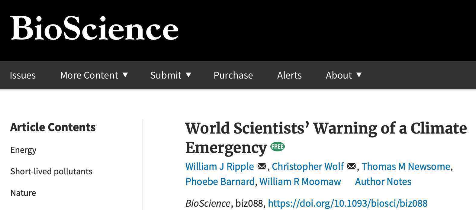 超过11000位科学家发出气候危机警告。BioScience期刊截图