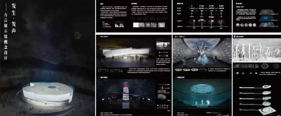 作品以2020年世博会为命题,采用时间空切片作为展厅原型,不断翻转时间空形成展厅页面形状。多重时间的叠加空构成了时间简史,与时间空港口的主题相一致,引出了内部叙事/[/。室内展以未来为时间主线。通过离港、抵港、返港三个环节,从未来的角度了解人类的发展,感受未来的不同情况,让观众产生共鸣,正确认识未来,通过自己的努力创造理想的未来。