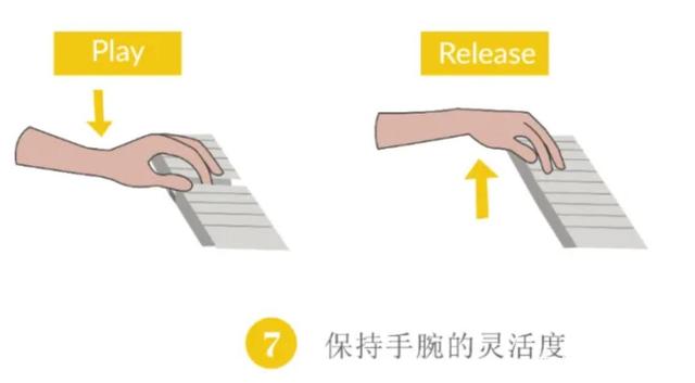 会运用手臂的下一步就是要学会怎么正确的使用手腕。拿起双手,想象水流的样子,再将水流的样子放到手腕上,让手腕尽可能大幅度地“游”起来。弹琴时手腕也要时刻保持着这样一个轻松、自然的状态;