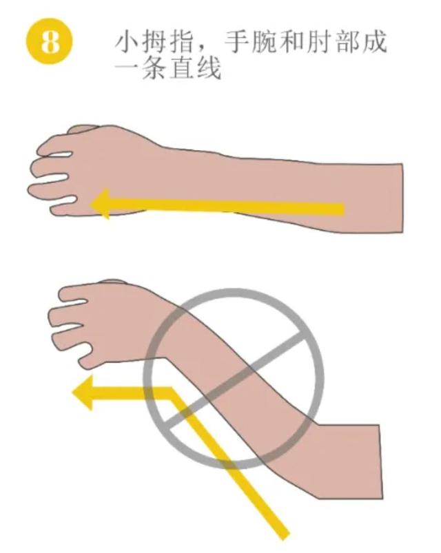 弹琴时,我们的小拇指、手腕和肘部要成一条直线,有很多时候孩子在弹琴时会旋转手腕,这是一种很不正确的弹琴姿势;