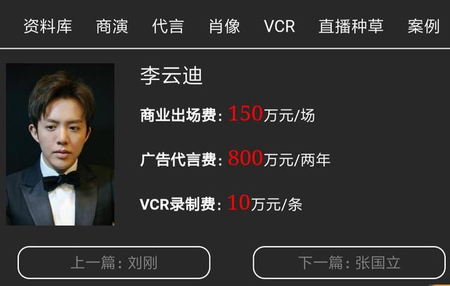 目前,李云迪的单场出场费达到了百万以上,代言费达到了500万以上。