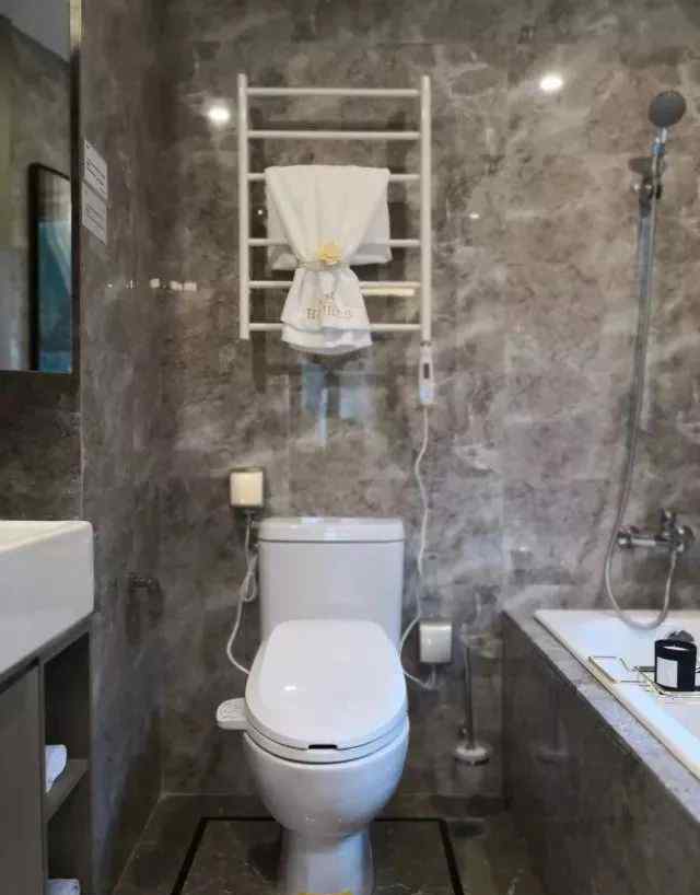 ▲B标准,卫生间墙面是仿大理石瓷砖