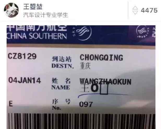 @王皓(zhào)(kn):我真的很佩服我的父母,甚至给了我一个机票上显示不出来的名字~王皓!