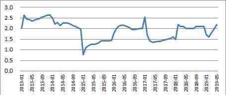 2019年第二季度,高端白酒产品价格再次上涨。目前普通飞天茅台零售价超过2300元,五粮液水晶瓶和国窖1573价格分别达到1100元和1000元。与2011-2012年不同,在当前价格下,茅台销量增加但长期供不应求,五粮液销量增加,国窖1573销量回升。