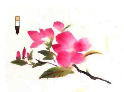 第二步:由于桃花的花瓣是复合花瓣,所以我们必须掌握每朵花的整体透视关系,以及正、反、仰、俯、开、半开、含苞等具体特征。不可能是一样的。幼叶以淡墨为主,部分地方涂有赭石、胭脂、淡草绿。↓