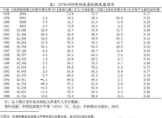 1998年后,政府加大了对社会力量兴办福利机构的政策引导和资金支持。同年,为了推进社会福利社会化进程,民政部在各地探索实践的基础上,选择了13个城市开展社会福利社会化试点。在此期间,养老机构打破了政府原有的安排,从公共机构自费接人到鼓励社会力量设立养老机构,政府对养老机构的管理不断开放,而私营养老机构的数量也不断增长。
