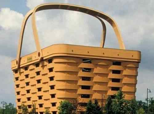美国菜篮子建筑的形状像菜篮子,也是美国菜篮子制造公司的总部。虽然建筑和自己的产品息息相关,但是外观真的很丑!虽然比较新,但还是不能接受!