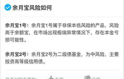 在于的购买页面上,我们可以清楚地看到五个产品分别标有低风险、中风险和高风险。很多对余额宝收益不满意的投资者可能会选择低风险的余额宝宝月1号和3号,但最终的投资结果表明,低风险并不意味着没有风险,亏损是常见的。