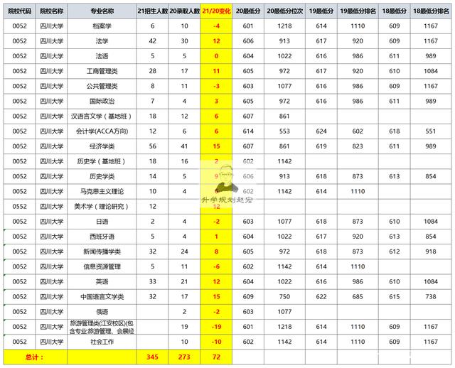 最后,再来看看文科的招生变化,总共招生345人,比2020年增加了72人,各个专业之间的变化也不是太大,同时提前批的基地班也是调整到本科批哈;具体大家可以多看看;