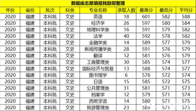 文科最高分数的专业也是英语,录取最低分数是582分,其次是经济学和地理科学类,录取最低分数分别是584分和582分。