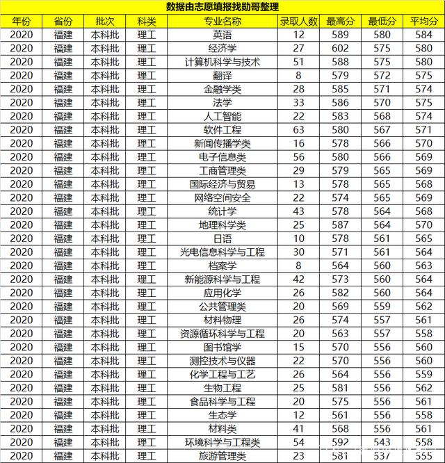 可以看到理科分数最高的专业是英语,录取最低分数是580分,其次是经济学和计算机科学与技术,最低分数都是575分。