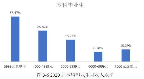 本科毕业生的收入主要在“3999元及以下”,占比37.47%,其次是“4000-4999元”,占比25.82%。