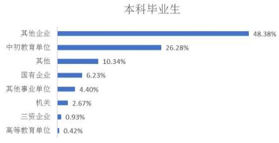可以看到,本科毕业生进入其他企业的人数占比最大,比例是48.38%,其次是中初教育单位,比例是26.28%。
