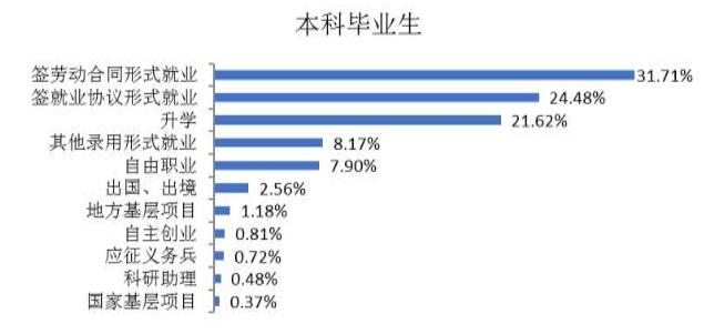 可以看到签约就业的占比最大,总签约的比例是56.19%,其次是升学,比例是21.62%。