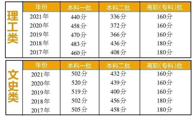 今年理工类中,本科一批录取最低控制分数线为440分,本科二批录取最低控制分数线为336分,高职(专科)批分数线为160分,文史类中,本科一批录取最低控制分数线为502分,本科二批录取最低控制分数线为432分,高职(专科)批分数线为160分。