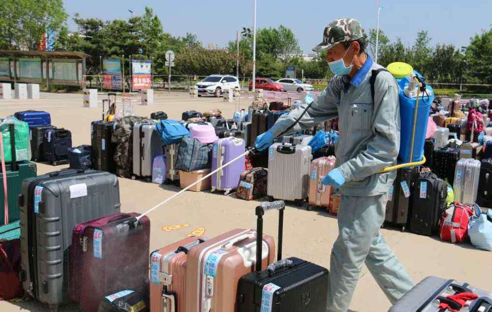 四点,学生取回所有经过全面严格消杀的物品,在班主任带领下,排成两条长龙有序返回校园。