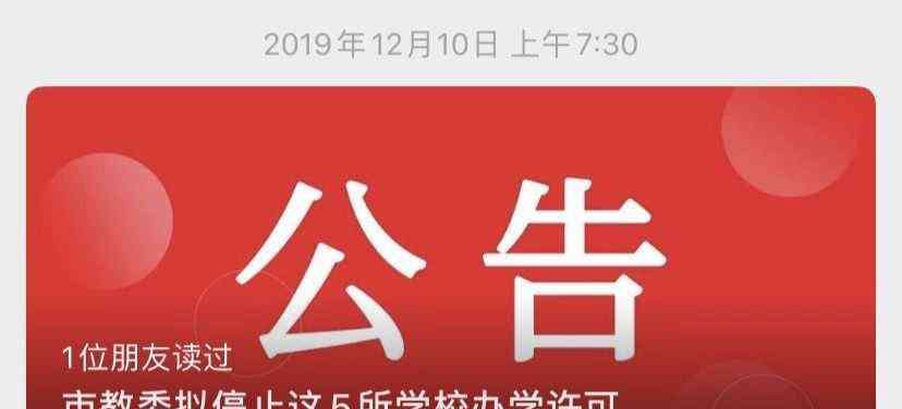 此前,2019年12月10日,北京市教育委员会官方微信账号曾发布拟停止有关学校办学许可的公告。