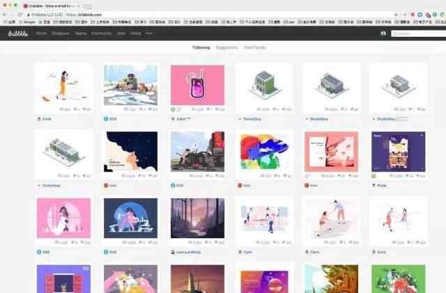 Dribbble——UI设计师的主要聚集地,上面会有很多小而美、小而精的东西,比较适合新手临摹观看,缺点是图太小;