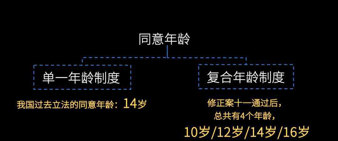 当然还有第二种分类,分为普通年龄和有信任关系的年龄。以美国的《刑法典范本》为例。除了10岁和16岁,一个很高的年龄定在21岁。