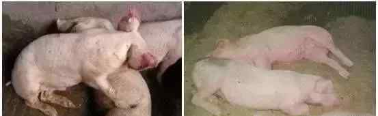 2.母猪皮肤苍白或发黄,脊柱突出,背部有“血线”,分批推迟发情或不发情,繁殖率低。