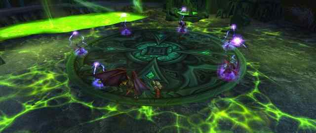 就算你准备了施法材料,也要有三个队友帮你完成仪式,才能真正完成法术。仪式中术士会召唤一个基座,你的三个队友会点击基座和你一起施法。过一会儿,其中一个玩家会被牺牲(也就是死了),然后一个末日守卫会服从召唤来帮你战斗。而且这个法术也有一年中最高的冷却时间——一个小时。即使你有足够的准备,也只能每小时施放一次这个召唤法术。