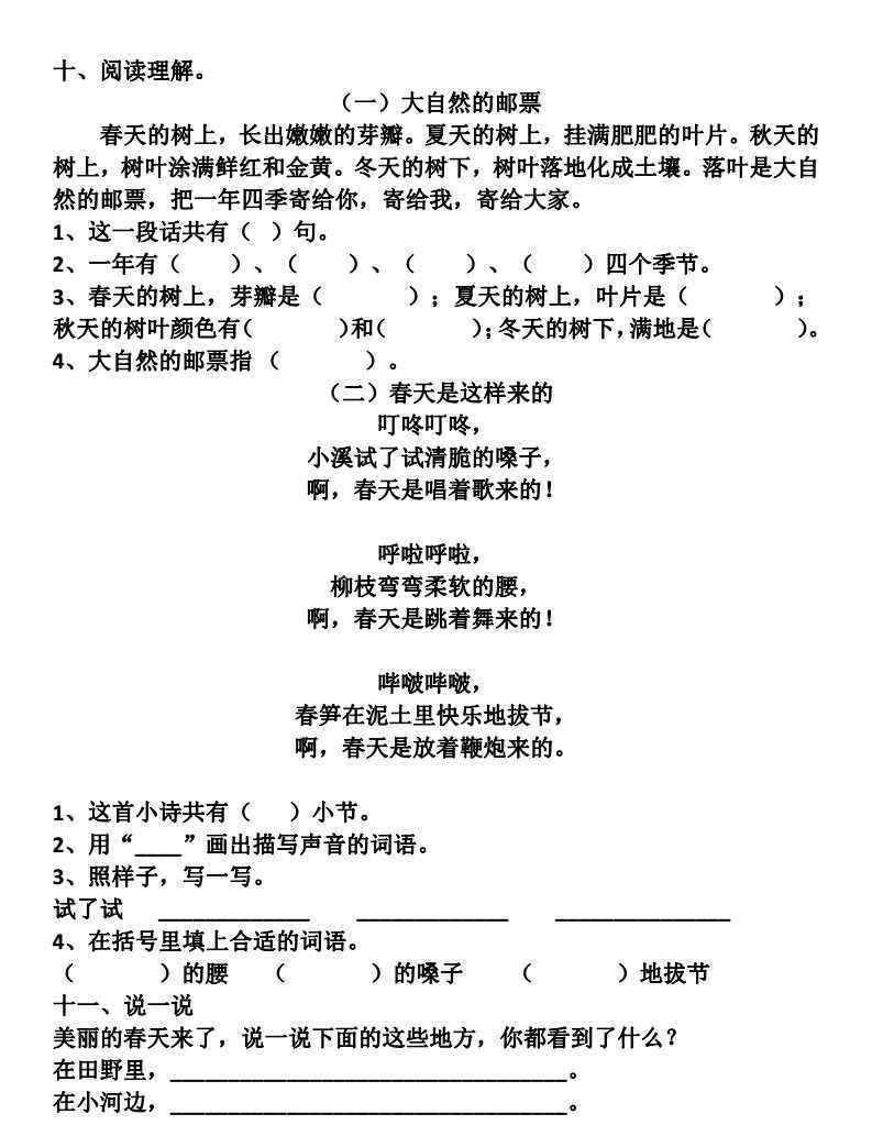 十、阅读理解。