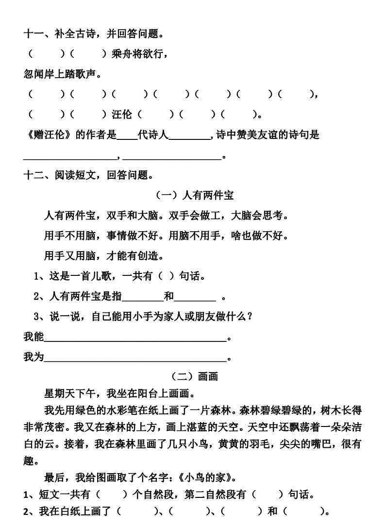 一年级第二卷