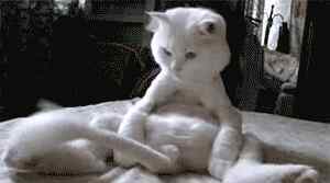 有时候猫也会在强大的敌人面前这样做,表现出软弱和顺从,也就是足智多谋。